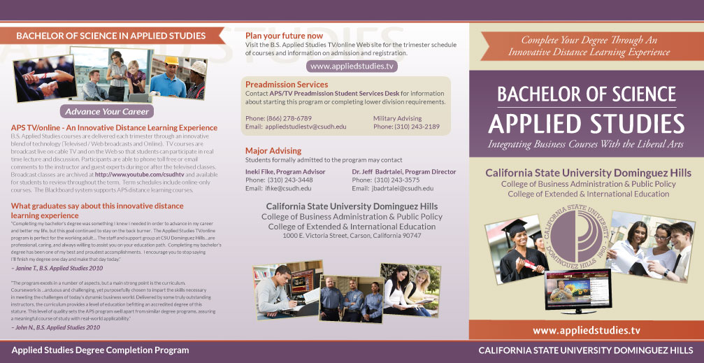 Informational brochure for Cal State University Dominguez Hills Applied Studies program.